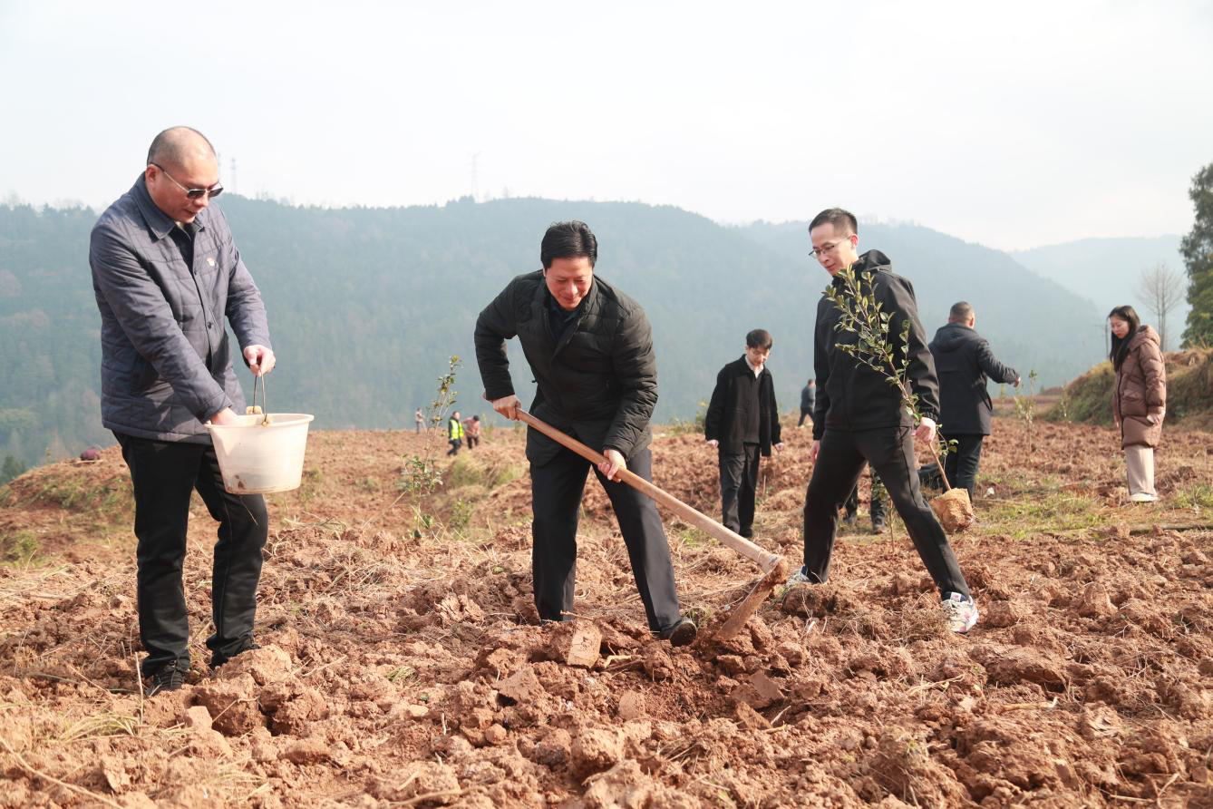 開工儀式后,集團(tuán)黨委書記、董事長許大政與參加開工儀式的人員共同開展了“我為群眾辦實(shí)事”種植油茶實(shí)踐活動(dòng)。