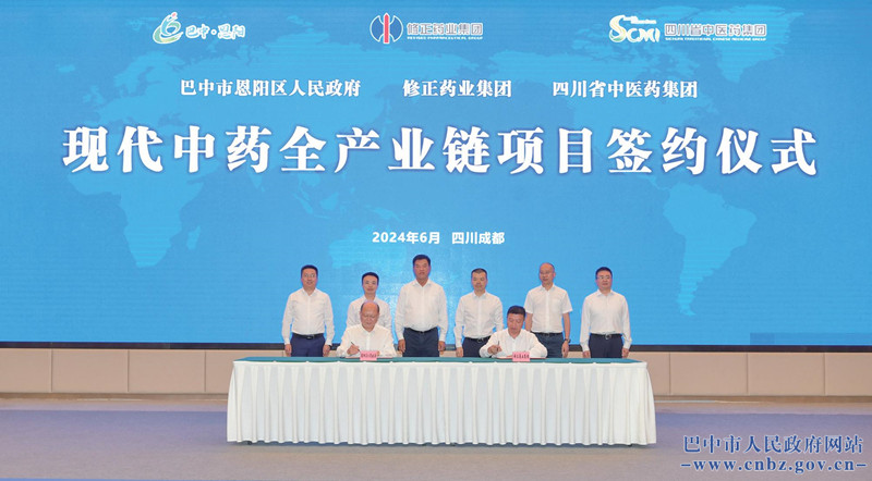在成都分會場,舉行了現(xiàn)代中藥全產(chǎn)業(yè)鏈項目簽約儀式,巴中市恩陽區(qū)人民政府分別與修正藥業(yè)集團、四川省中醫(yī)藥大健康產(chǎn)業(yè)投資集團簽訂合作協(xié)議?,F(xiàn)代中藥全產(chǎn)業(yè)鏈項目總投資4.2億元,包括建設中藥材種植基地、中藥材加工生產(chǎn)線、中藥材展示交易中心、中藥和大健康產(chǎn)品制造等內(nèi)容。